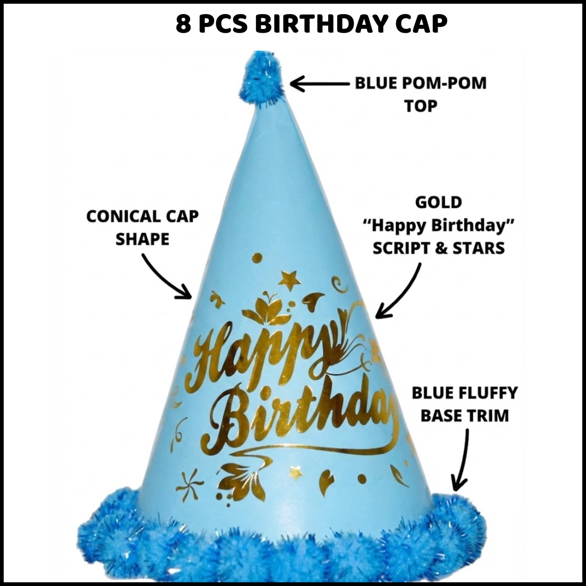 9.8 PCS Birthday Caps