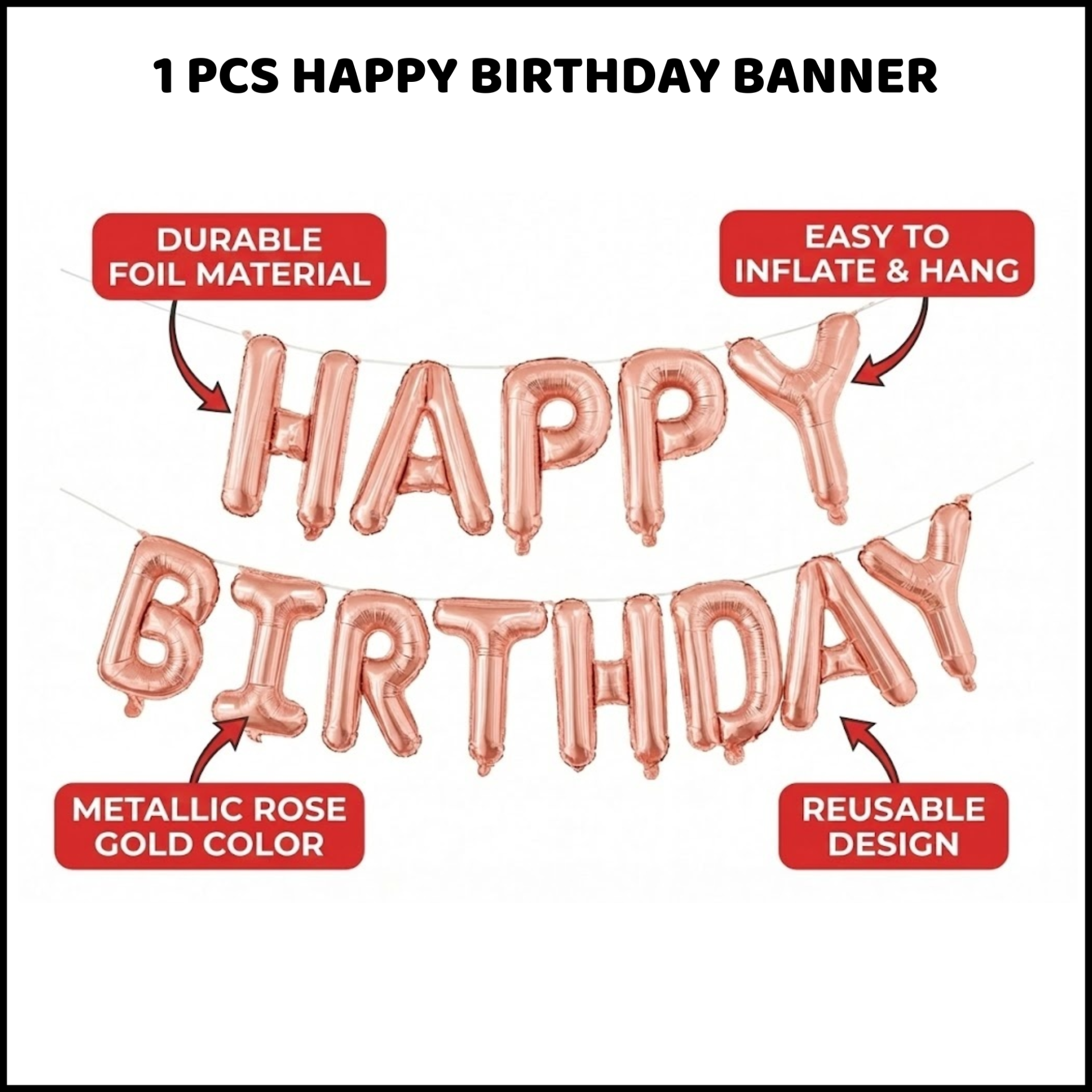 • All-in-one decoration set for quick DIY setup • Theme décor: Premium Gold Happy for a photo-ready birthday setup • Color theme: Gold, White • Best for: Room, Hall, Photo backdrop, Home • Easy to install at home and creates a premium party look in minutes