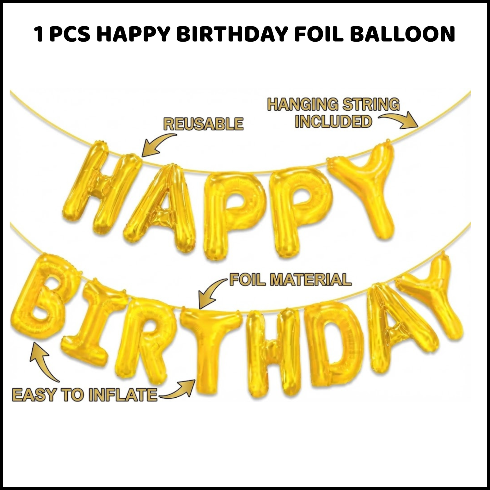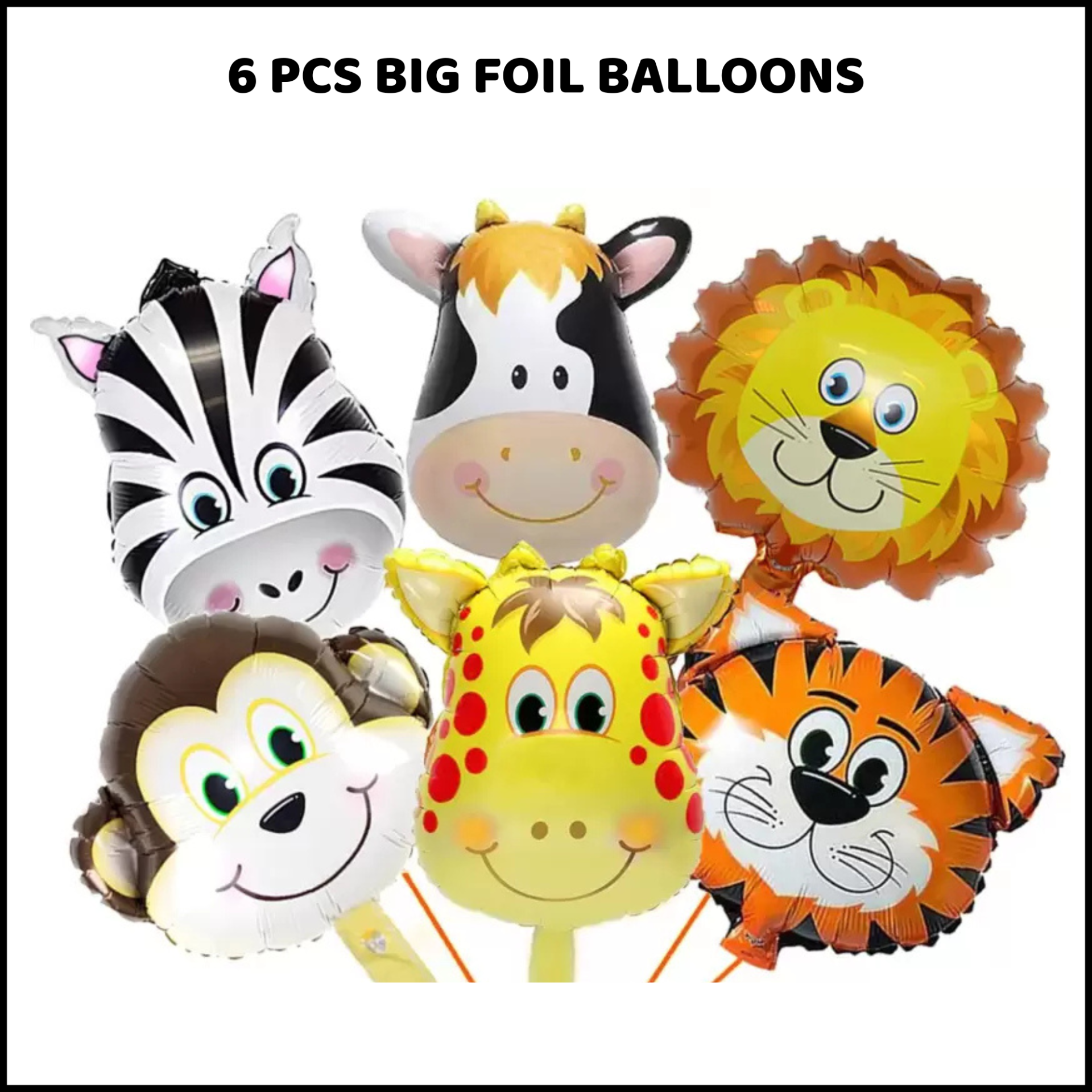 This premium all-in-one decoration set includes balloons, foil curtains, animal face foil balloons, star foils, Happy Birthday foil letters, confetti balloons, lights, poppers, and complete installation accessories.