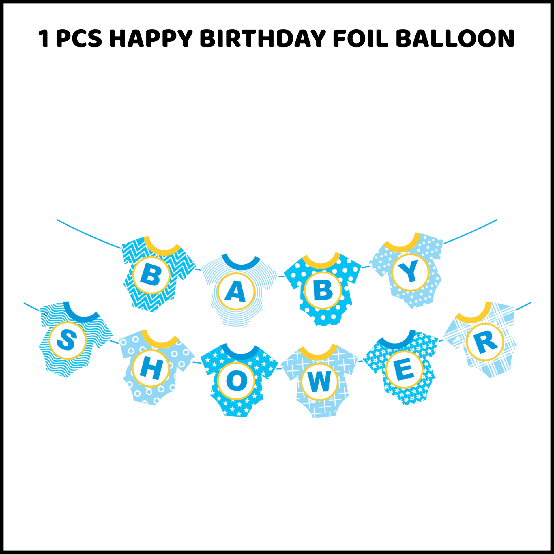 Celebrate your little prince’s special day with this Baby Boy Birthday & Baby Shower Decoration Kit (104 PCS) in a soothing Blue & White theme. This complete DIY decoration combo includes balloons, foil curtains, baby foil balloons, star balloons, banner, lights, candles, poppers, sash, goggles, and accessories—perfect for baby showers, welcome baby parties, naming ceremonies, and first birthdays.