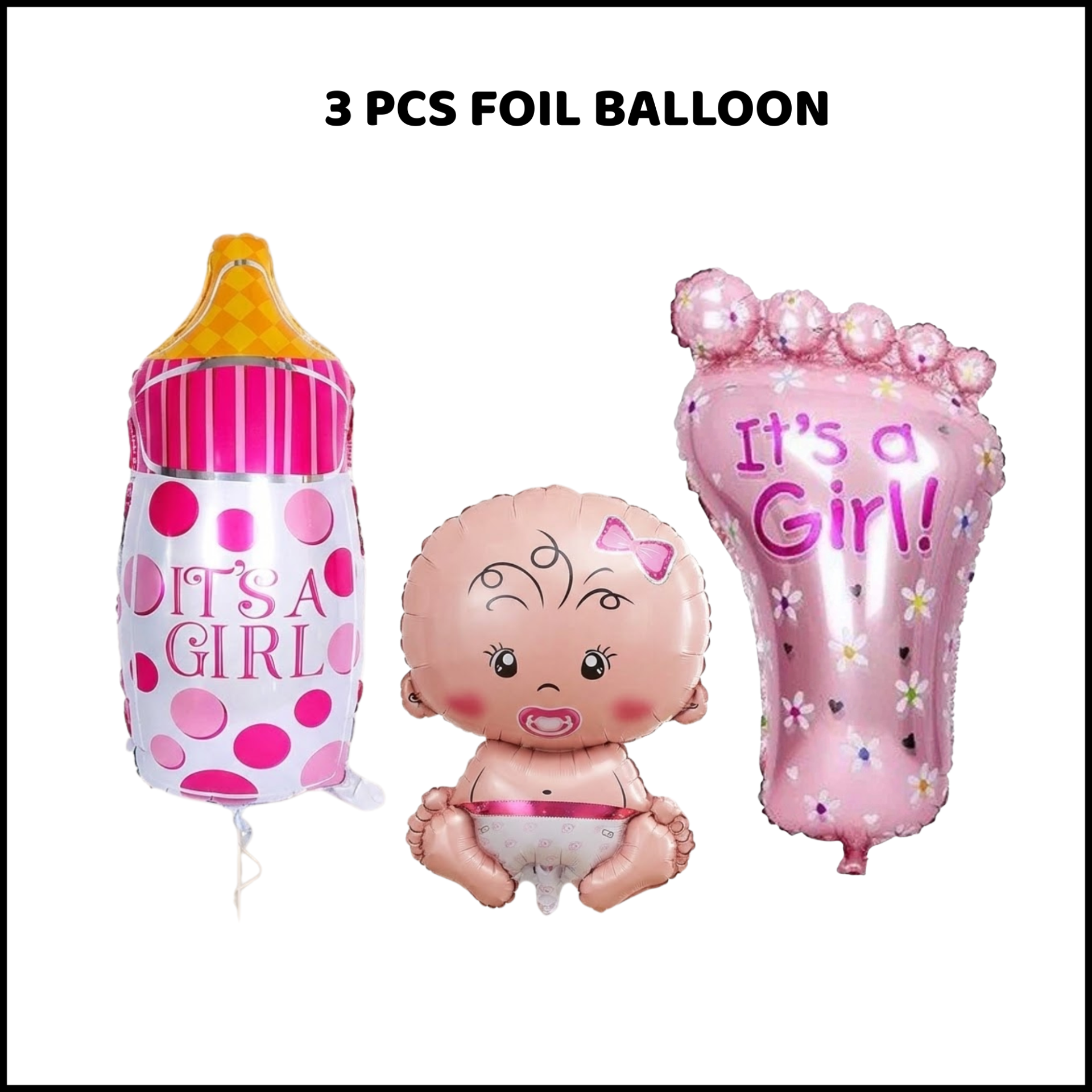 ✅ Cute baby girl & “It’s a Girl” foil balloons included