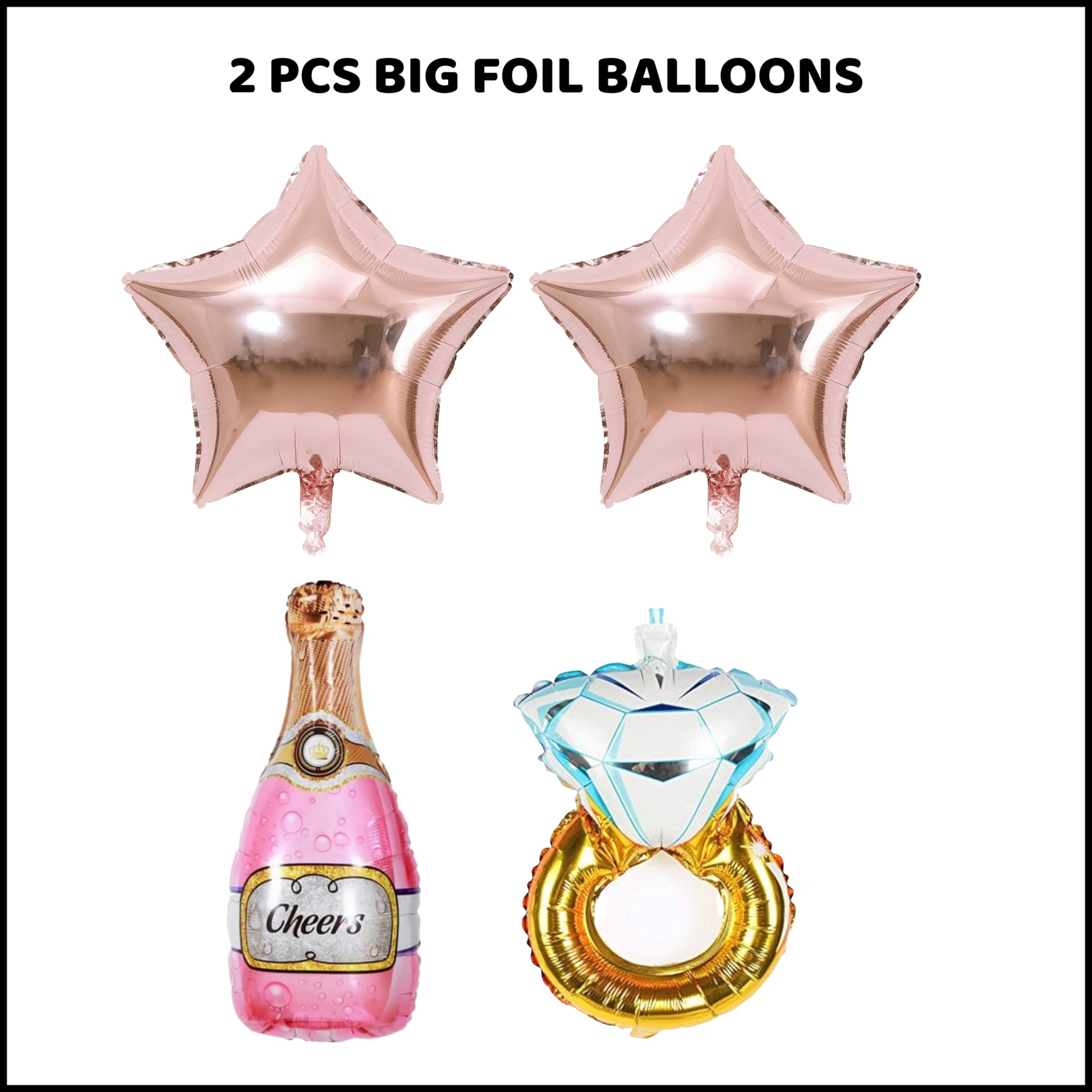 • All-in-one decoration set for quick DIY setup • Theme décor: Bride To Be for a photo-ready birthday setup • Color theme: Red, Pink, Gold, Rose Gold • Includes: Confetti balloons, Star foil balloons, Foil balloons, Birthday sash • Best for: Room, Photo backdrop, Home • Easy to install at home and creates a premium party look in minutes
