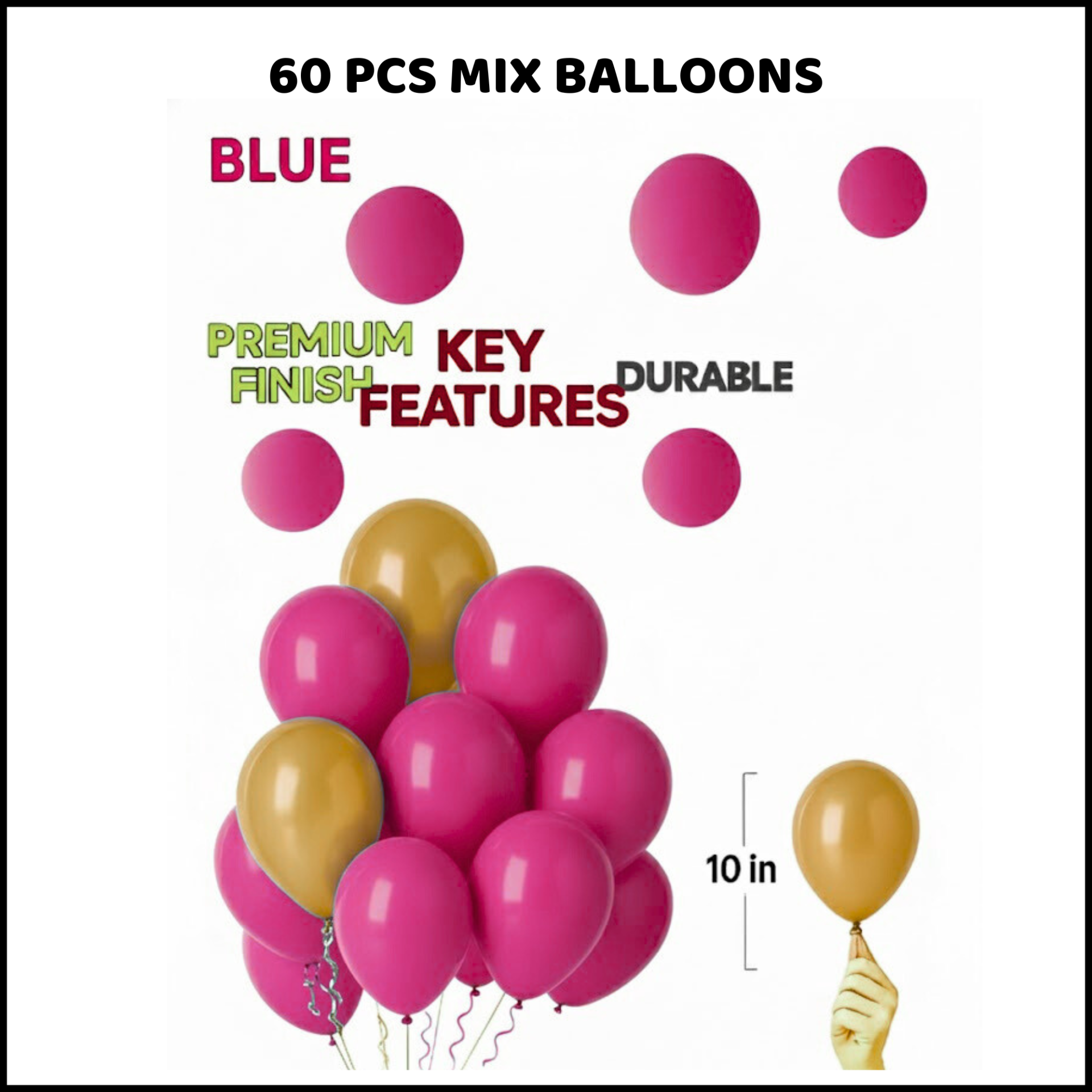 With 60 premium mix balloons, sparkling gold confetti balloons, and a balloon arch tape, you can easily design balloon arches, clusters, or side decorations. Celebration essentials like curl ribbons, LED cork lights, cake candles, party poppers, birthday caps, fun goggles, balloon pump, and birthday sash ensure both decoration and party fun are fully covered.