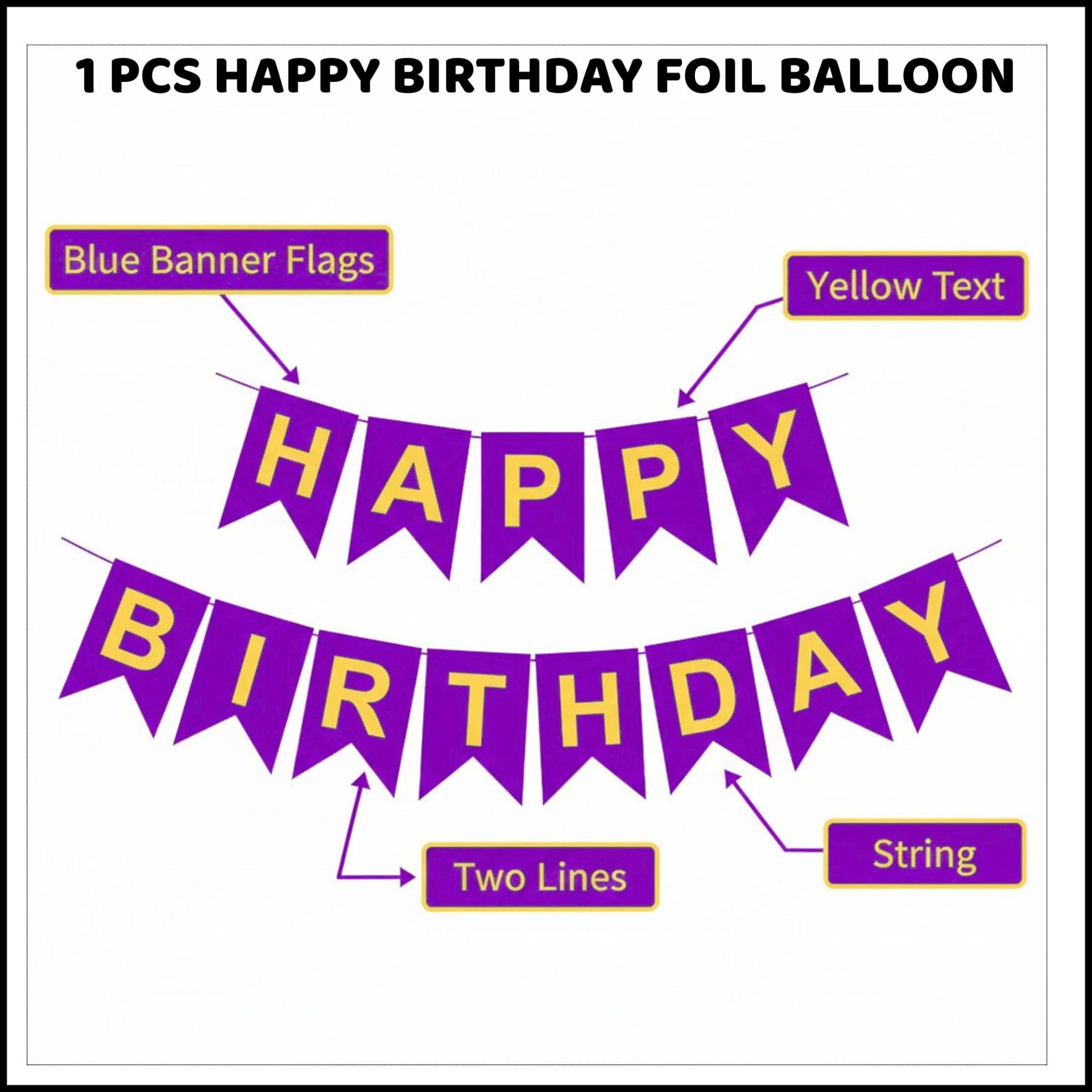 Happy Birthday Decoration Kit – Purple & Gold Theme (112 PCS) | Premium Birthday Party Decoration Combo for Home