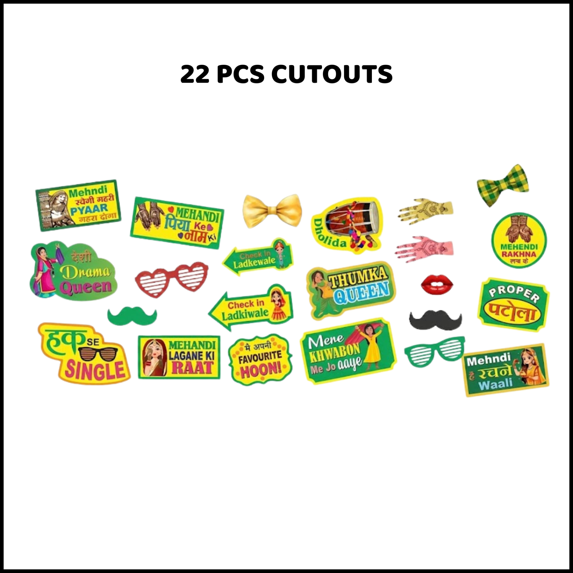 6. 22 PCS Mehndi-Theme Photo Booth Cut-Outs