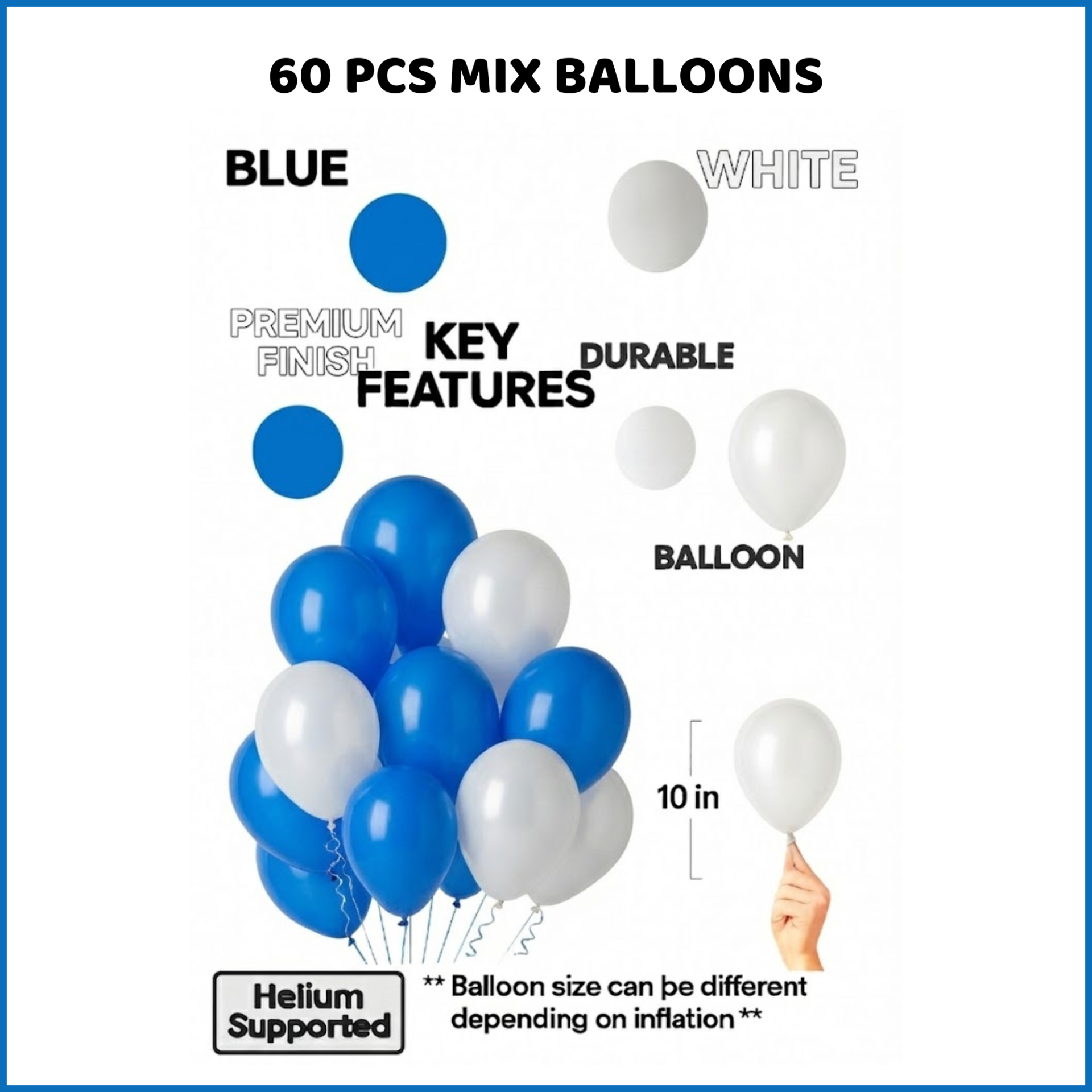 2.60 PCS Mix Balloons (Sky Blue, Pastel Blue & White)