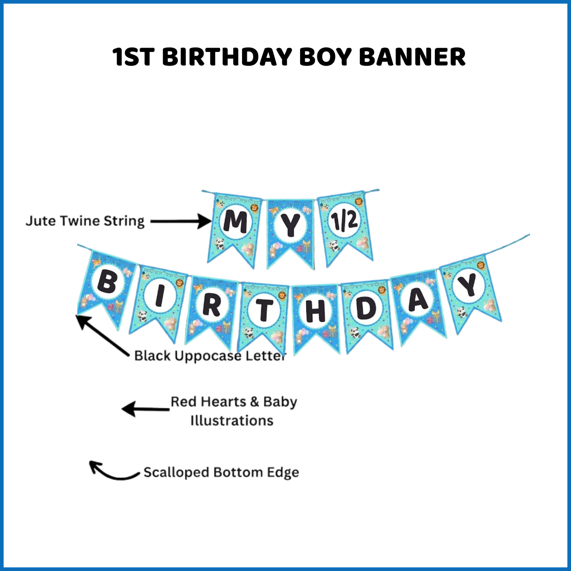 • Adorable blue theme specially designed for half birthday celebrations