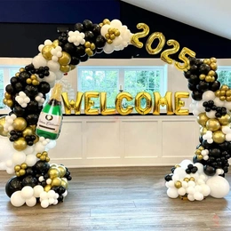 • Complete 54 PCS all-in-one decoration set • Theme décor: New year 2025 for a photo-ready birthday setup • Color theme: Gold, Black, White, Chrome • Includes: Foil balloons • Best for: Photo backdrop, Home • Easy to install at home and creates a premium party look in minutes