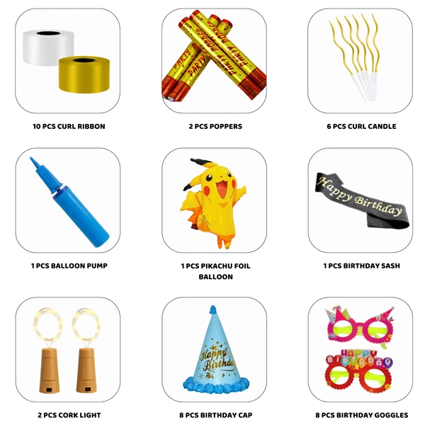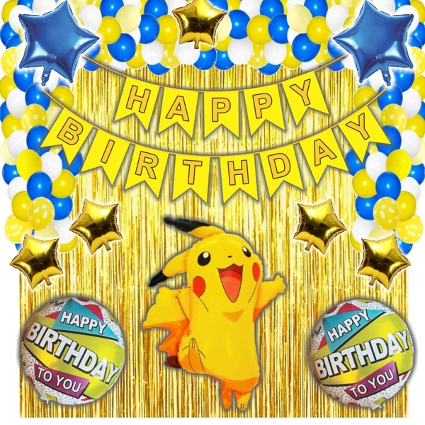 Bring smiles, excitement, and cartoon magic to your child’s birthday with this Pikachu Birthday Decoration Kit (118 PCS). Designed in a cheerful Yellow, Blue & White color theme, this all-in-one combo helps you create a professional, photo-perfect birthday setup at home without hiring a decorator.