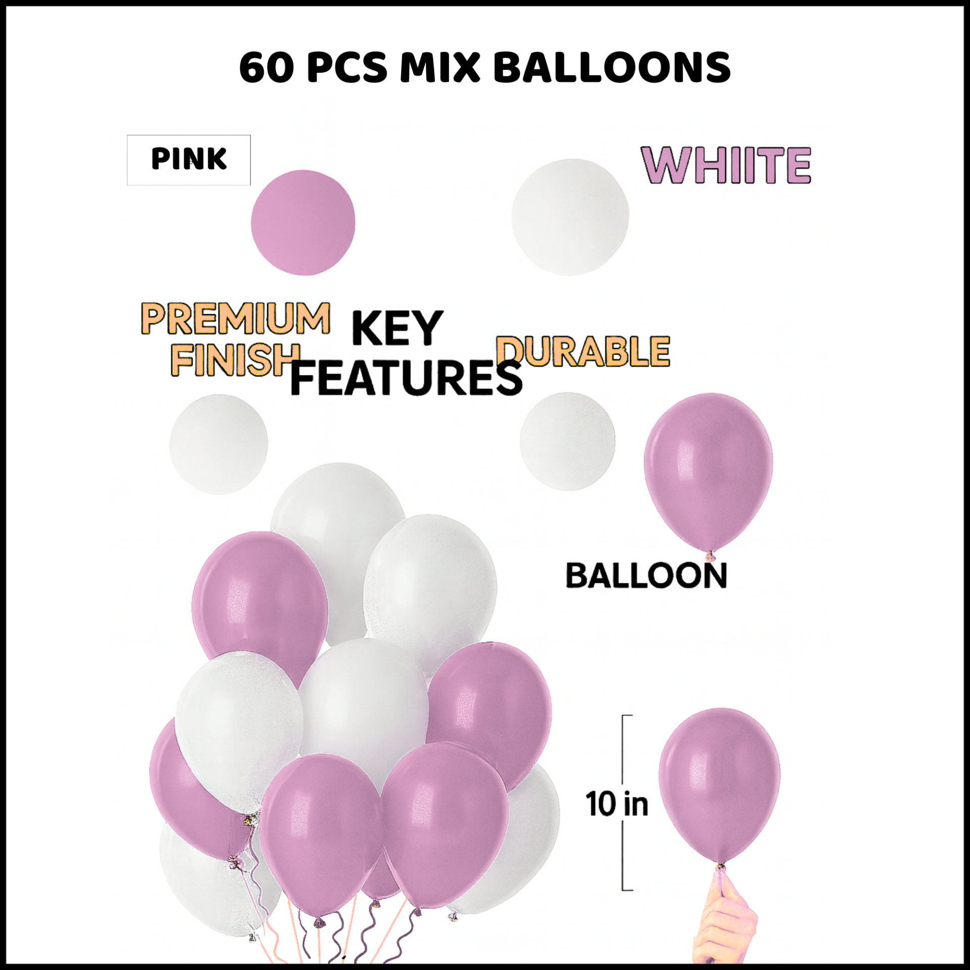1.60 PCS Mix Balloons (Pink, White & Confetti Balloons)
