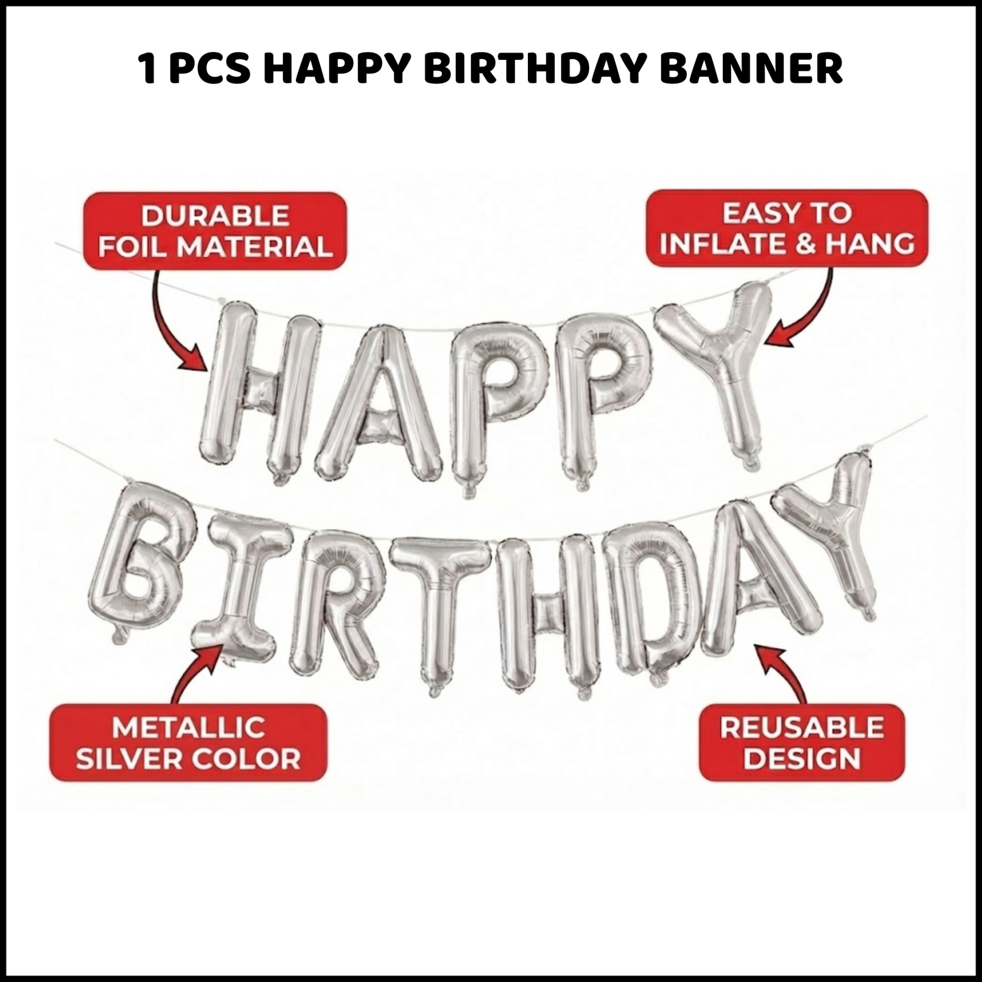 4.1 PCS Happy Birthday Banner (silver Theme)